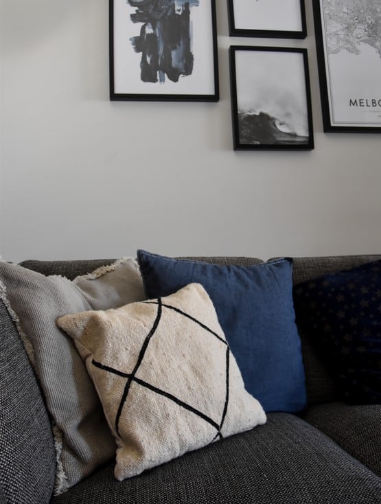 Want to bring a touch of warmth to your decoration? This Beni Ouarain cushion is made of the famous Beni Ouarain carpet. The cushion adapts perfectly to any type of interior thanks to its cool colors and sober patterns.