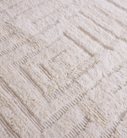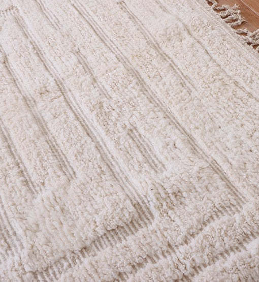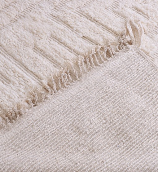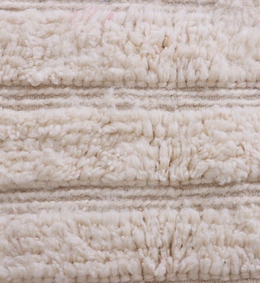This Authentic Moroccan Berber rug from Beni Ourain tribe was carefully handwoven by a cooperative of women artisans in the Mid-Atlas Mountains of Morocco. It’s made of 100% robust and pure wool fibers and was crafted using meticulous traditional knotting techniques. These carpets have ethnic authenticity, each rug is unique in its design, pattern and color. They are usually decorated with plain diamond patterns, and the coloring is relatively simple and sober.